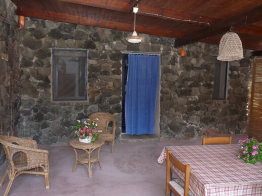In posizione strategica sopra gli scogli lavici che scendono verso il mare nella suggestiva Cala Tramontana, alla quale si accede percorrendo la strada antistante il dammuso.